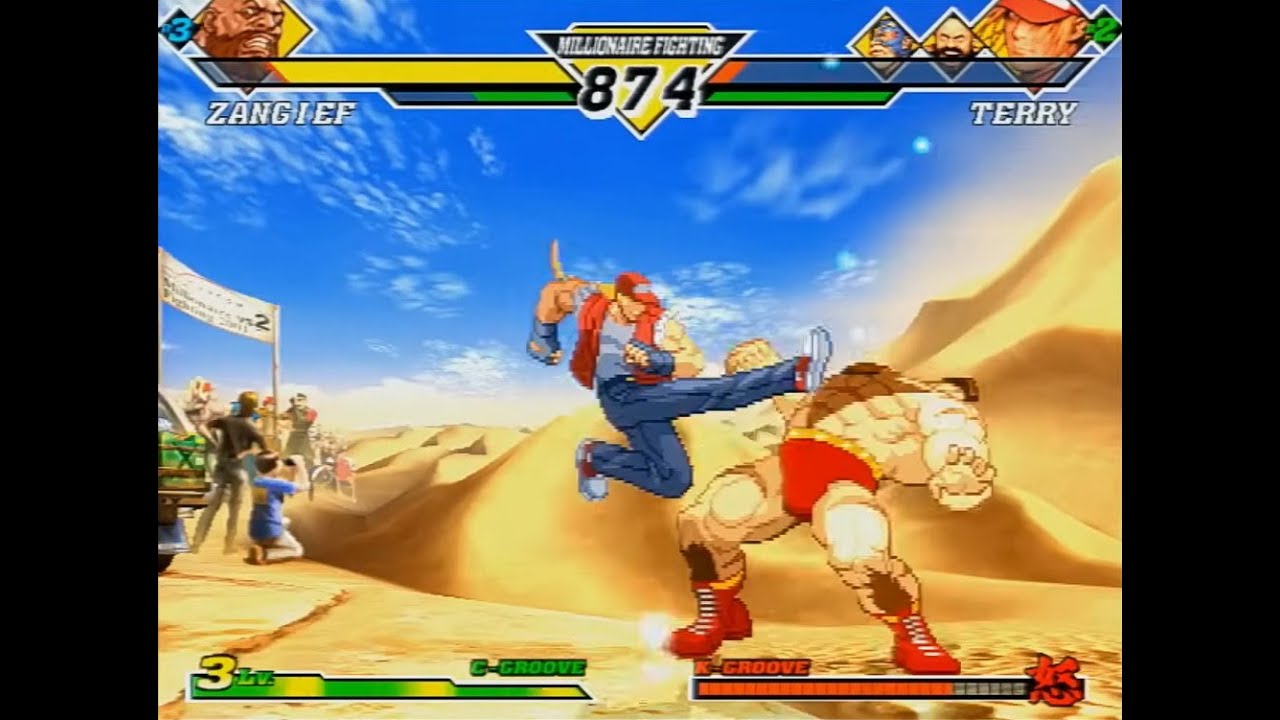 D’un côté, c’est vrai, de l’autre Dahlsim et Dimitri n’ont jamais été plus beaux en 2D que dans SvC donc c’était un peu le destin des jeux où les sprites étaient copié-collés pendant 5 ans sans retouches.