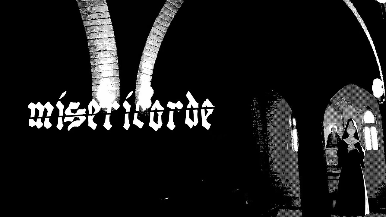 Pour finir, on reste dans la chrétienté avec un chouchou personnel, Miséricorde, un visual novel indé épisodique fait avec trois bout de ficelles, tout en noir et blanc tramé, et très très clairement influencé par Higurashi et Umineko. Donc comme ces deux-là, a priori zéro choix ou gameplay, et à la place il va falloir piger ce qui se passe avant la fin.