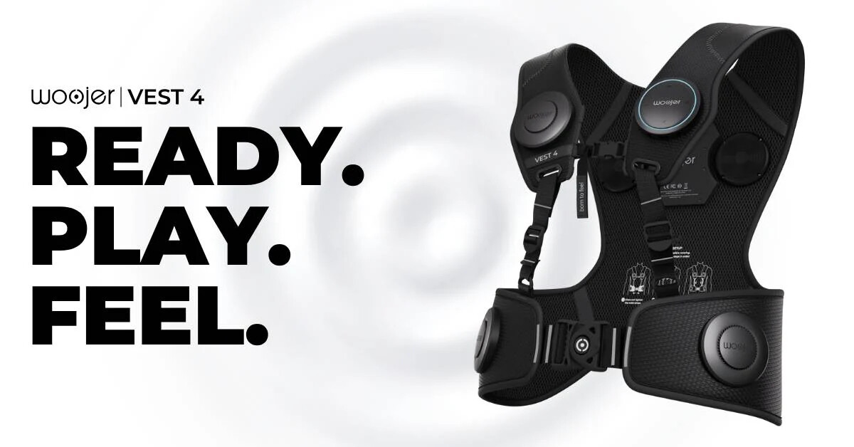 La Woojer Vest 4 est un gilet haptique muni de 6 x Osci™ V2 transducers répartis sur les flancs, la poitrine et les épaules. Ça vibre suivant les fréquences basses et apporte une dimension assez similaire à l’arrivée des véritables manettes vibrantes dans le JV : les sensations m’évoquent ma prise en main de la DualShock après les vibrations gadget de la N64 ou de la Dreamcast. Voire ma découverte d’Astro’s Playroom sur DualSense.