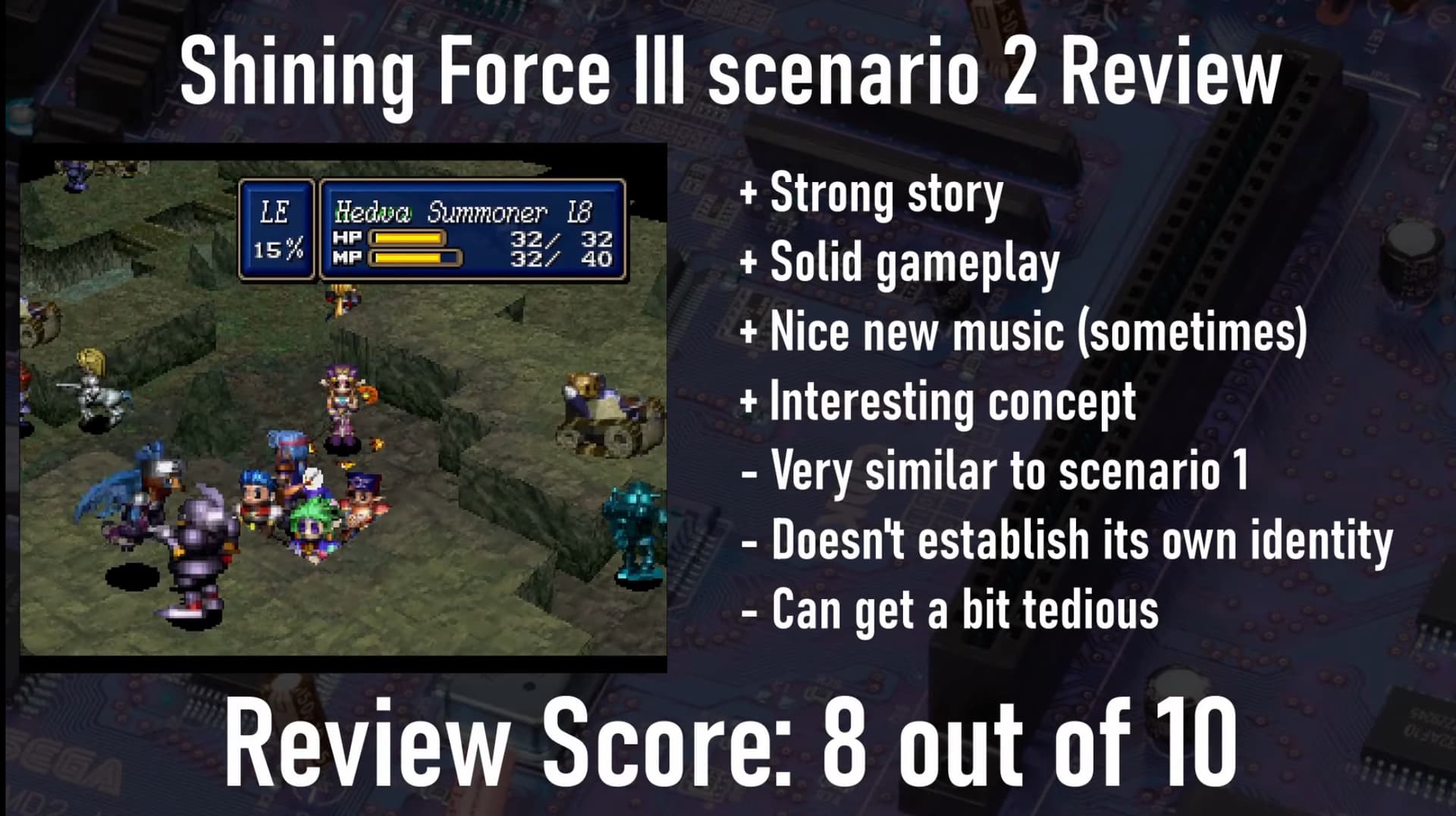 Je parlais de Shining Force à côté (ça m’arrive). J’avais par ailleurs complètement loupé qu’Inglebard Gaming avait enfin terminé* sa rétrospective Shining Force III au début de l’été avec la vidéo de Shining Force III: Scenario 3.