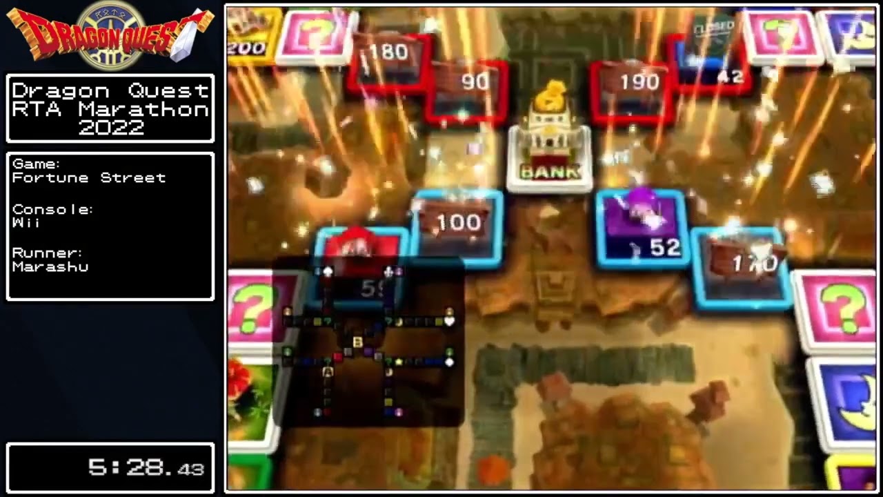 RPG Limit Break organise un marathon Dragon Quest ce week-end. Parmi des trucs plus conventionnels (dont un interminable RTA de DQ7 en vingt petites heures qu’on va gentiment esquiver), il y a notamment ce « finir le Dragon Quest Tour de Course à la Fortune (Wii) » assez rigolo.