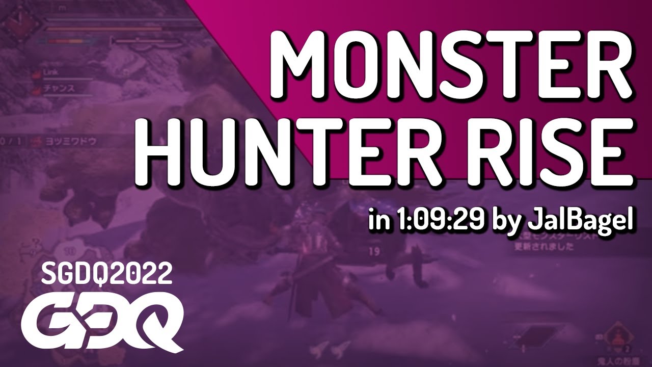 Je rattrape la SGDQ 2022 ce week-end. Monster Hunter était pour la première fois à la GDQ grâce au filoptère de Monster Hunter: Rise qui permet d’atteindre le (premier) staff roll en moins de 70 minutes. Ici avec une Switch Axe.