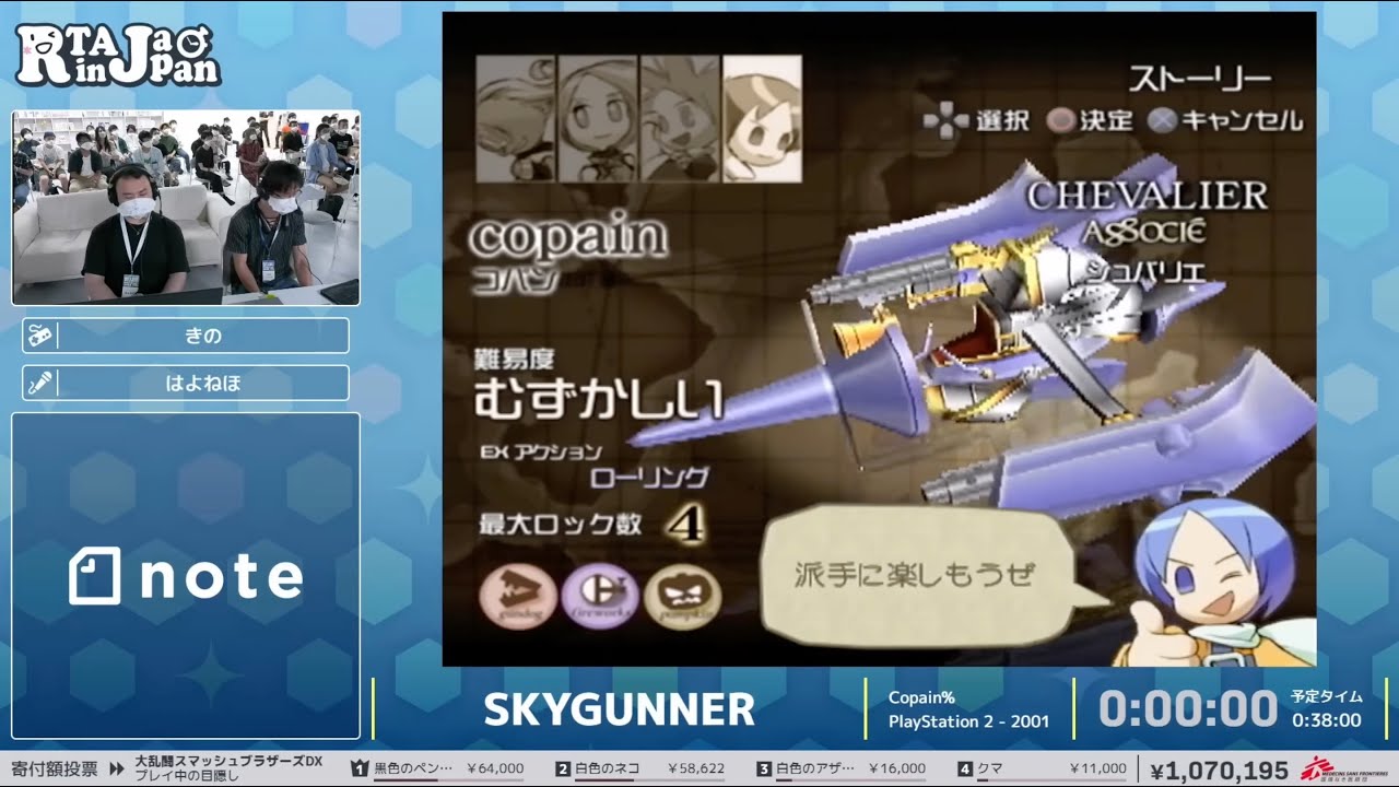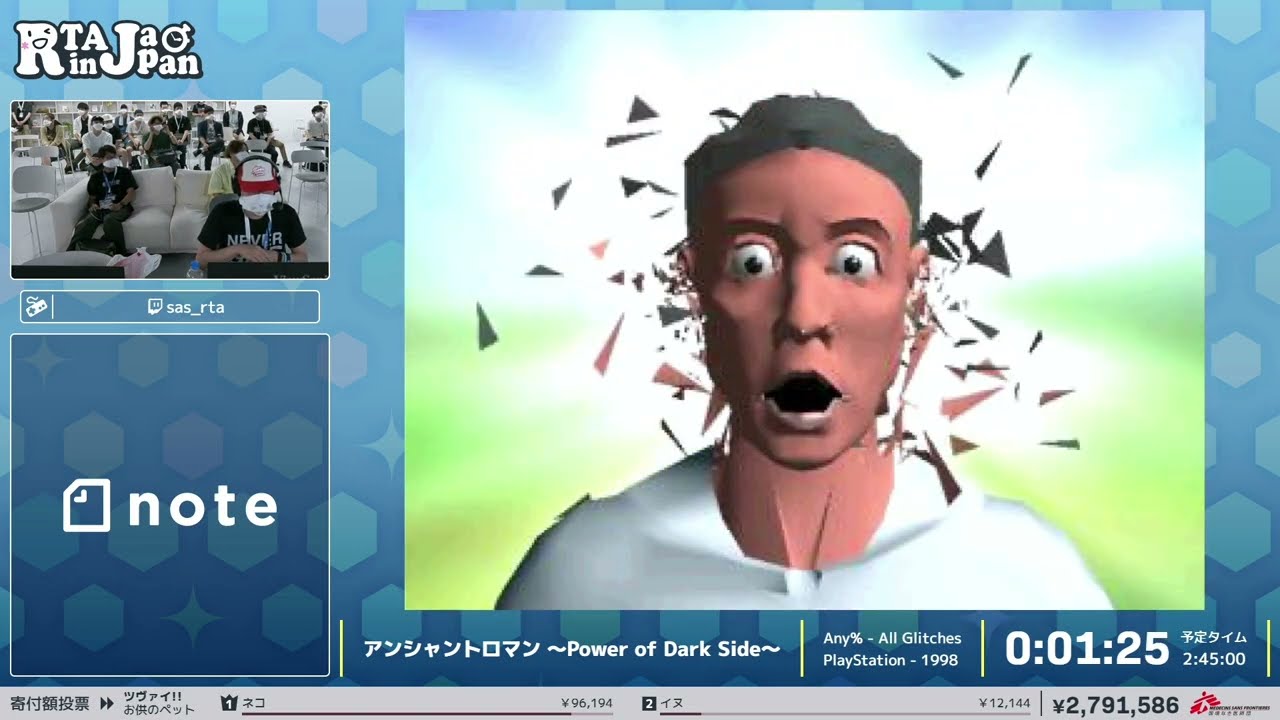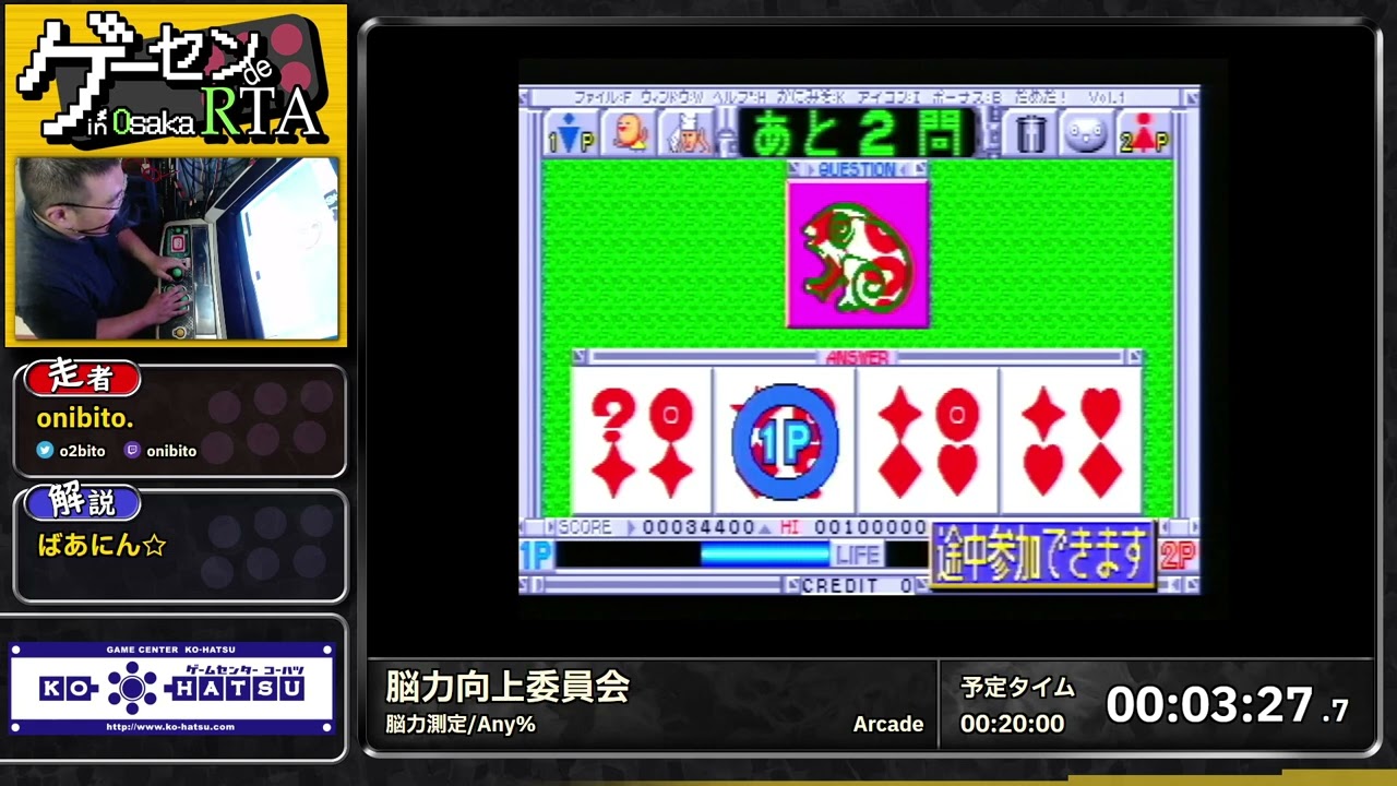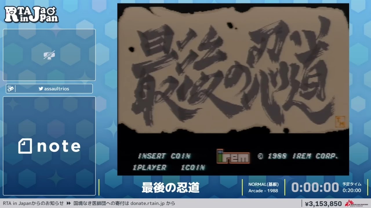Excellente idée du collectif RTAinJapan qui a décidé d’organiser un évènement dans une grosse salle d’arcade d’Osaka, ce qui permet du coup de voir des jeux rarement parcourus en marathon mais parfume aussi l’ensemble d’une chouette atmosphère vieille école. Je cale direct au début des speedruns mais les explications en intros des vidéos sont souvent intéressantes pour les personnes qui parlent ou voudraient bosser leur japonais.