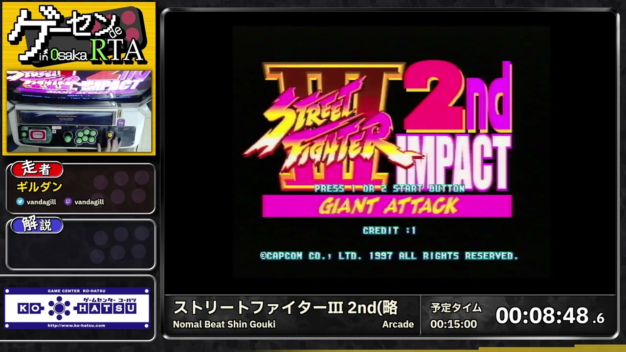 Street Fighter III: 2nd Impact (pour info c’est une speedrun “Shin-Gōki%” et le pauvre loupe son set-up pour débloquer le combat contre Shin-Gōki les deux premières fois)