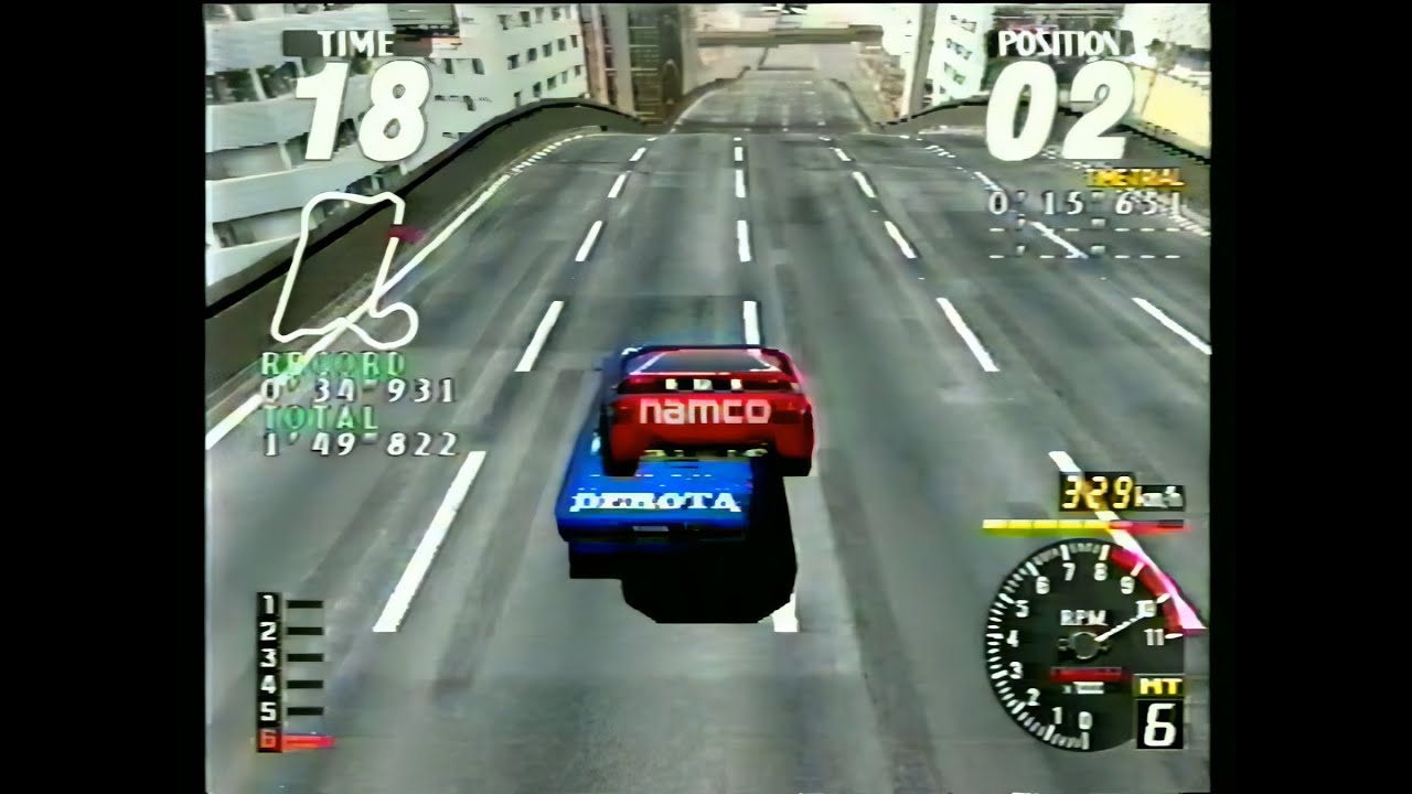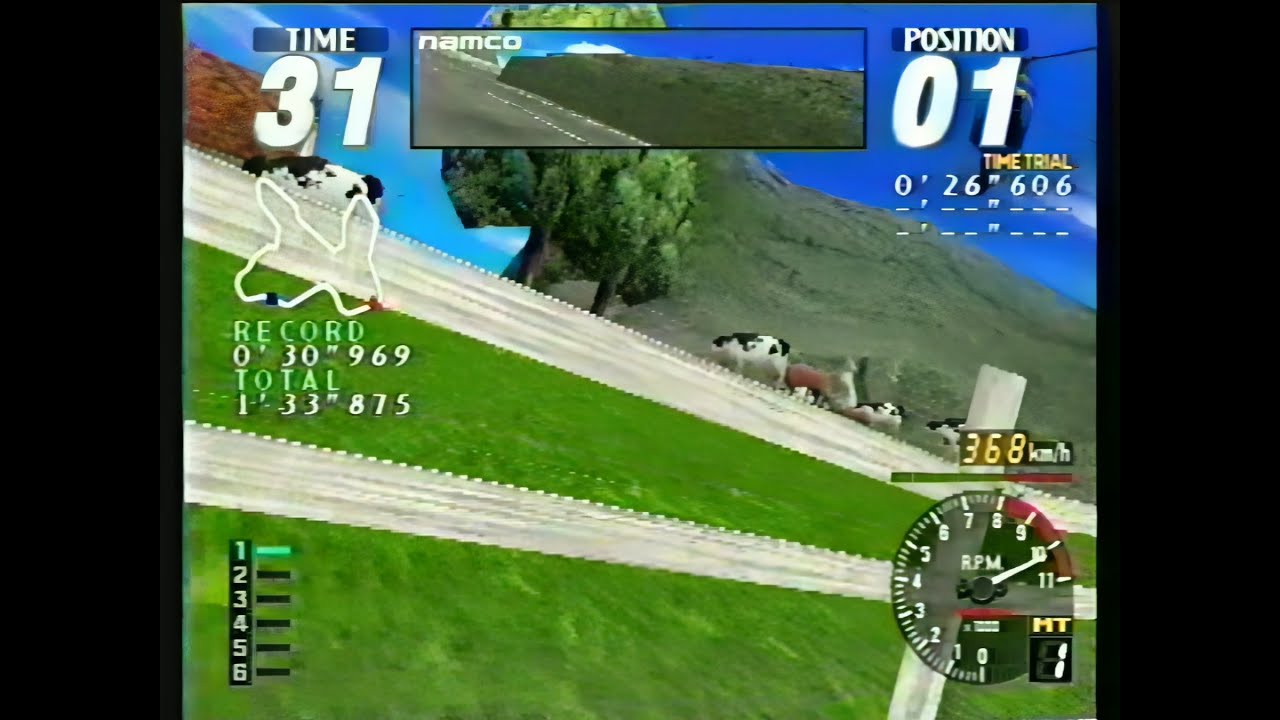 Ce que Team Marubaku, célèbre groupe de speedrun arcade de jeux de caisse au Japon, a découvert, c’est qu’on peut reproduire le bug sur les autres circuits en tamponnant la voiture bleue (le lièvre du circuit) pendant un saut puis en repassant en première avant d’atterrir.